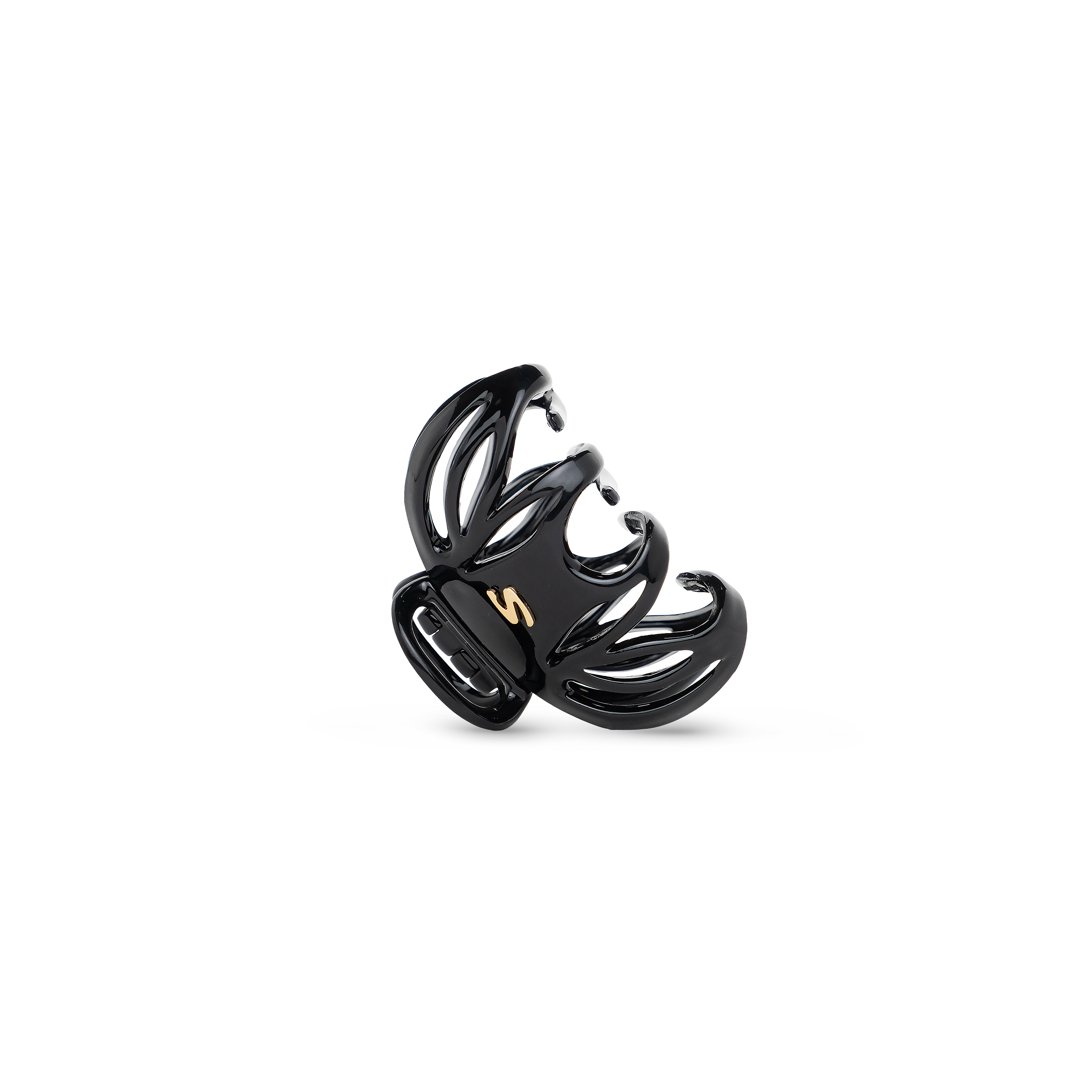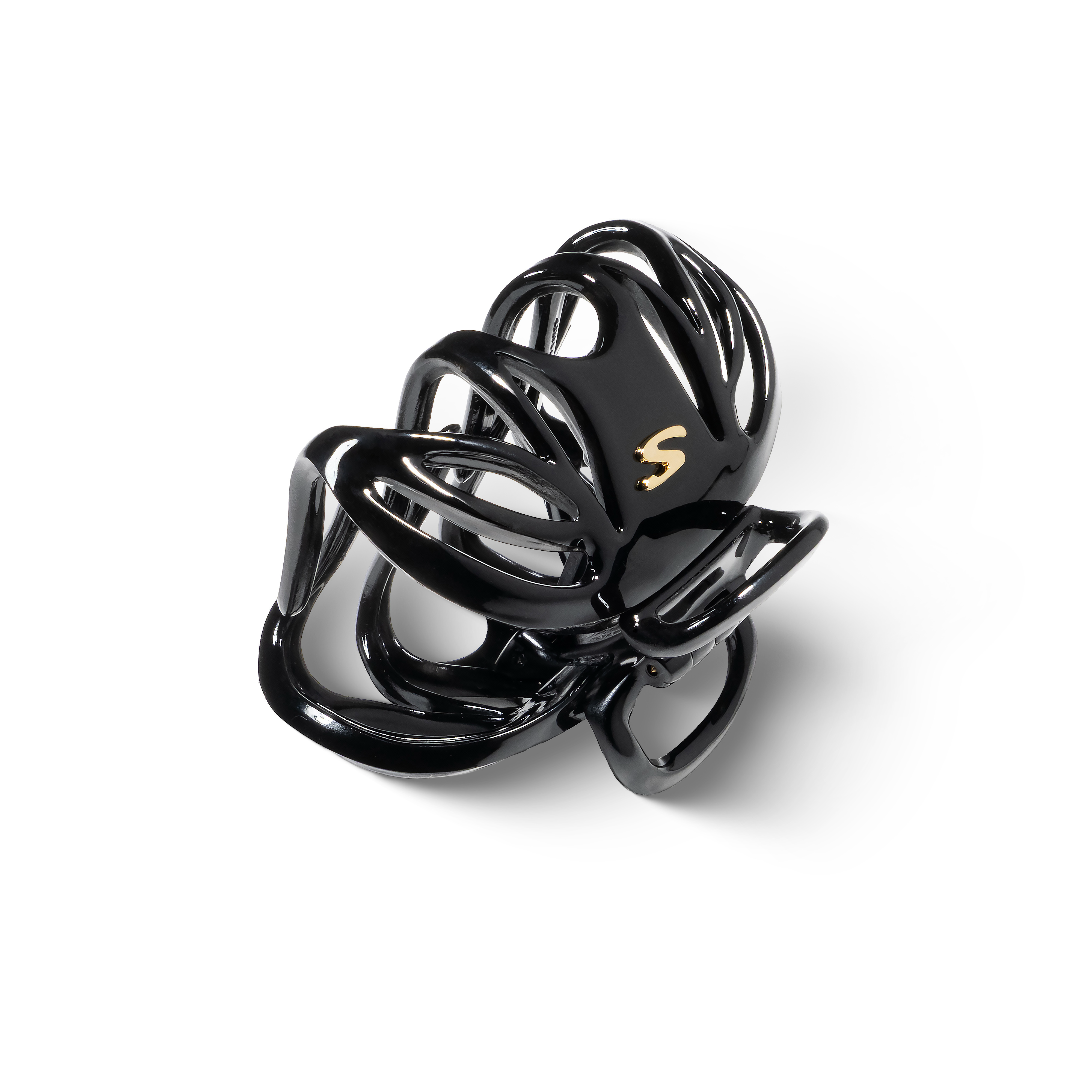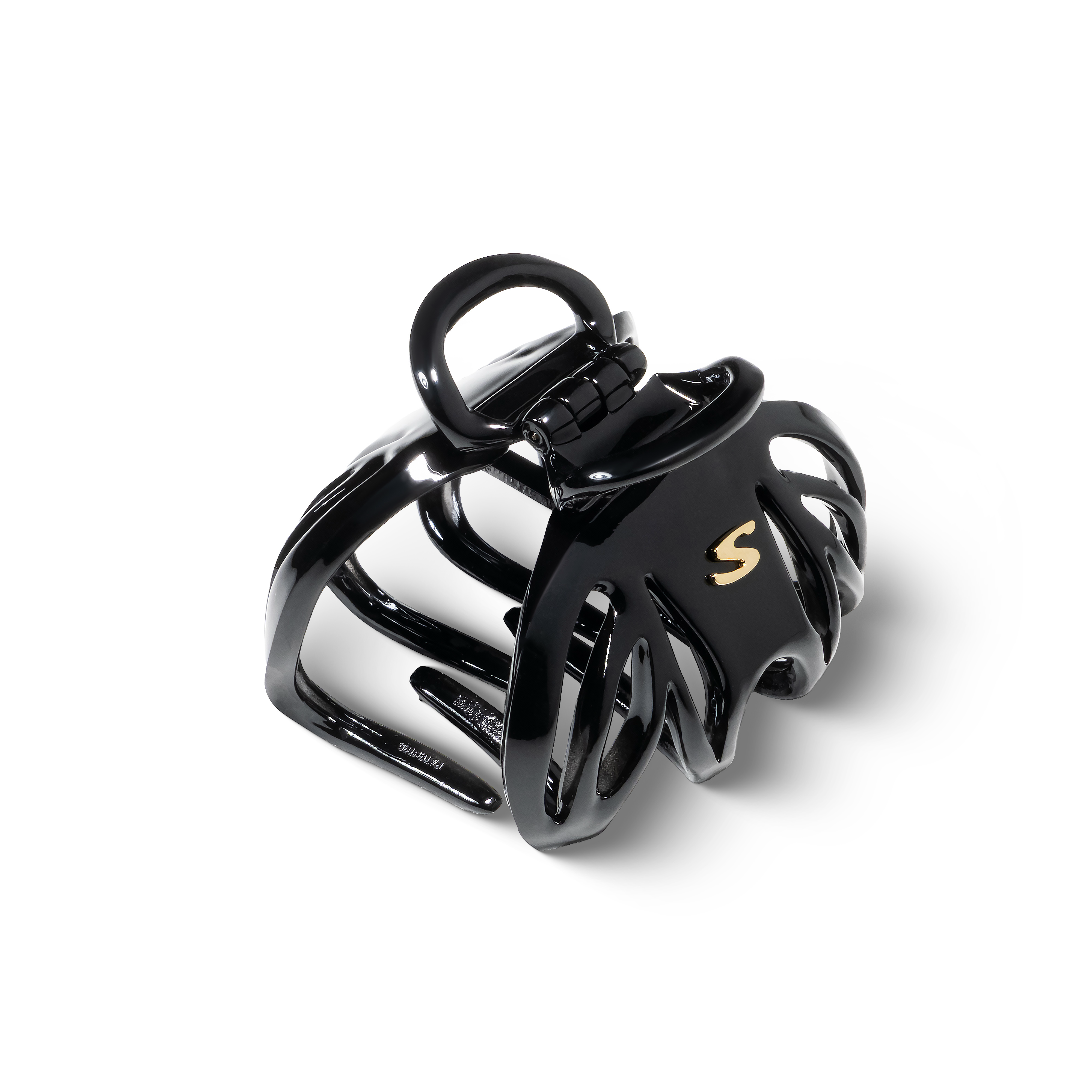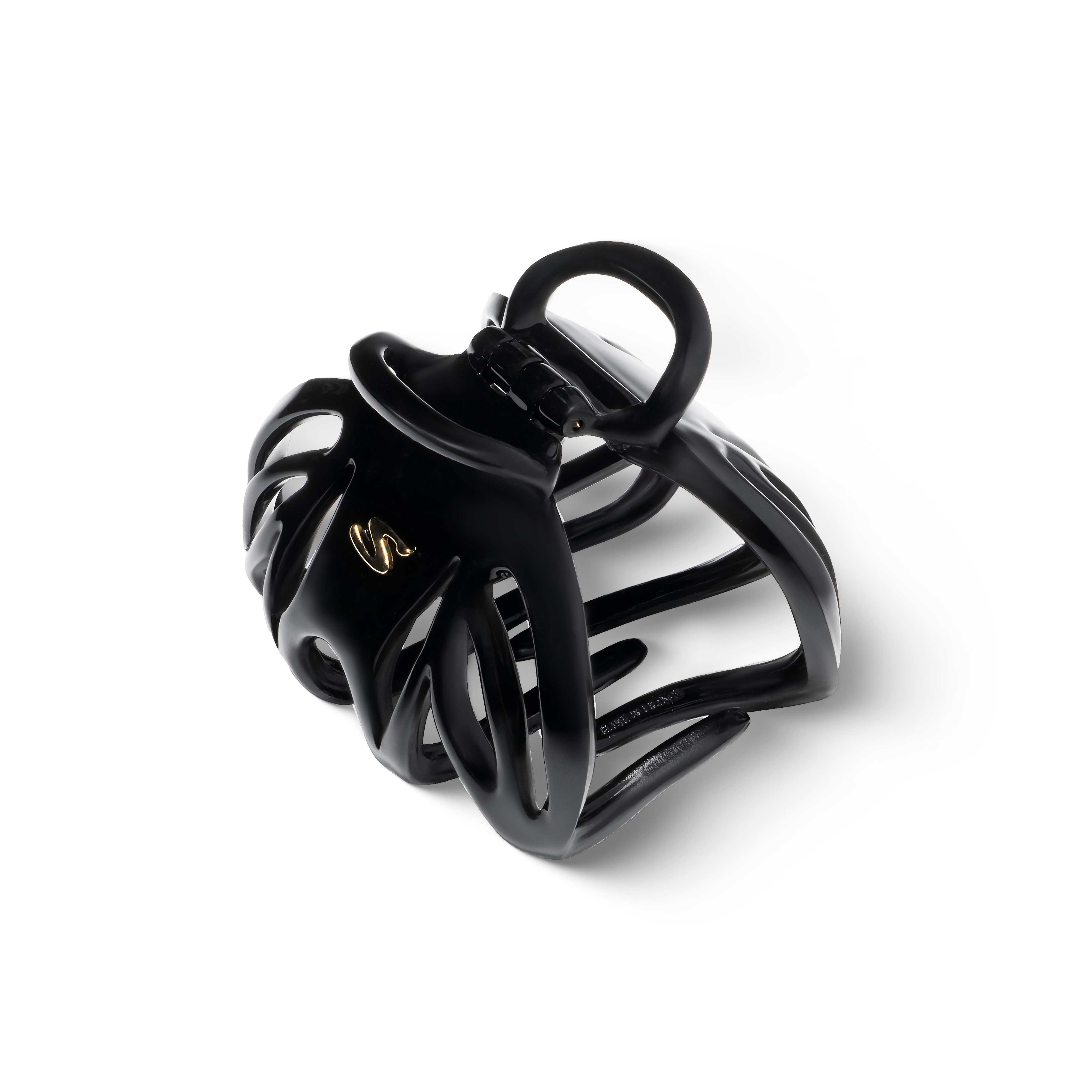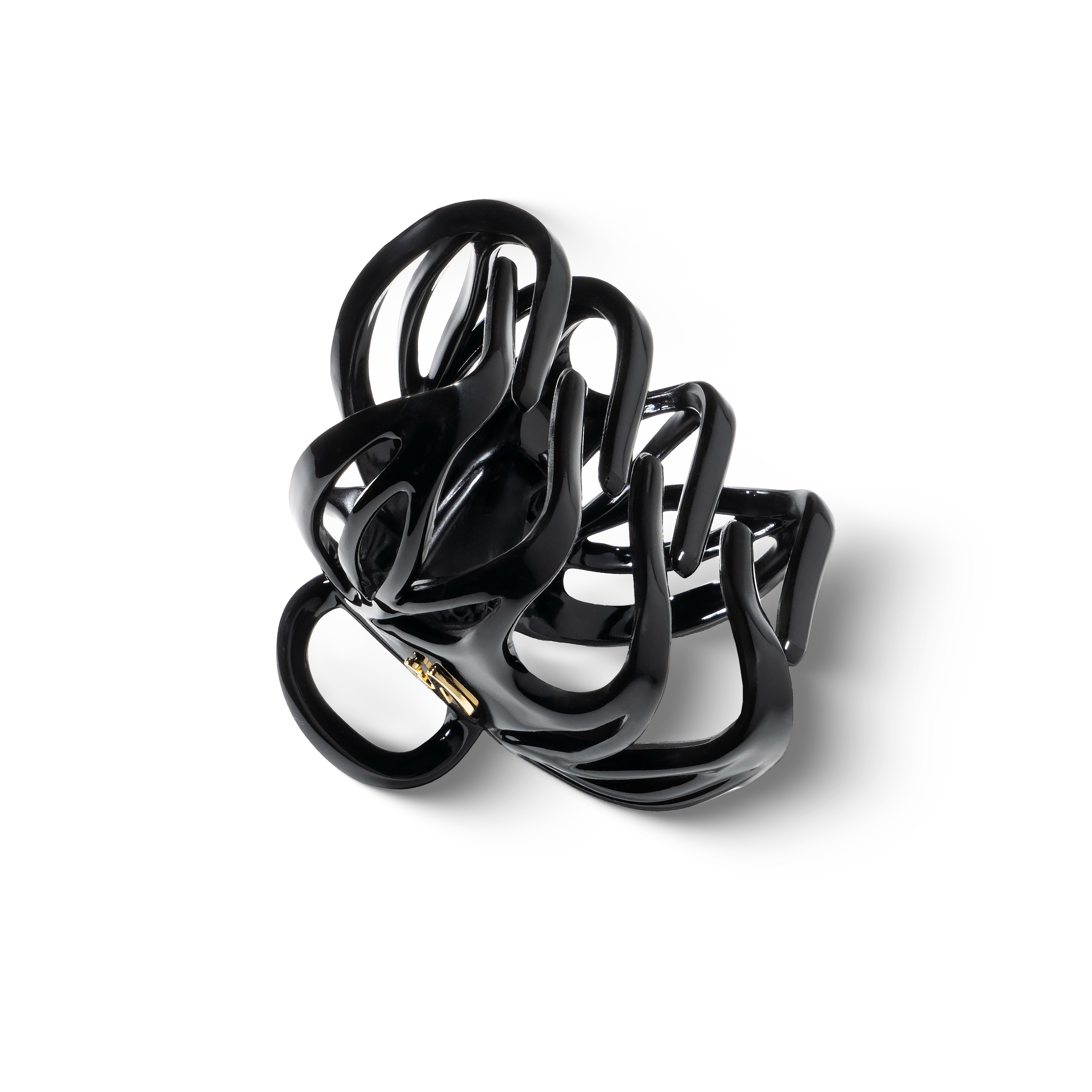 The Lena Small Claw Clip in glossy black acetate blends modern refinement with timeless French design. Ideal for polished half-up looks and elegant everyday styling.