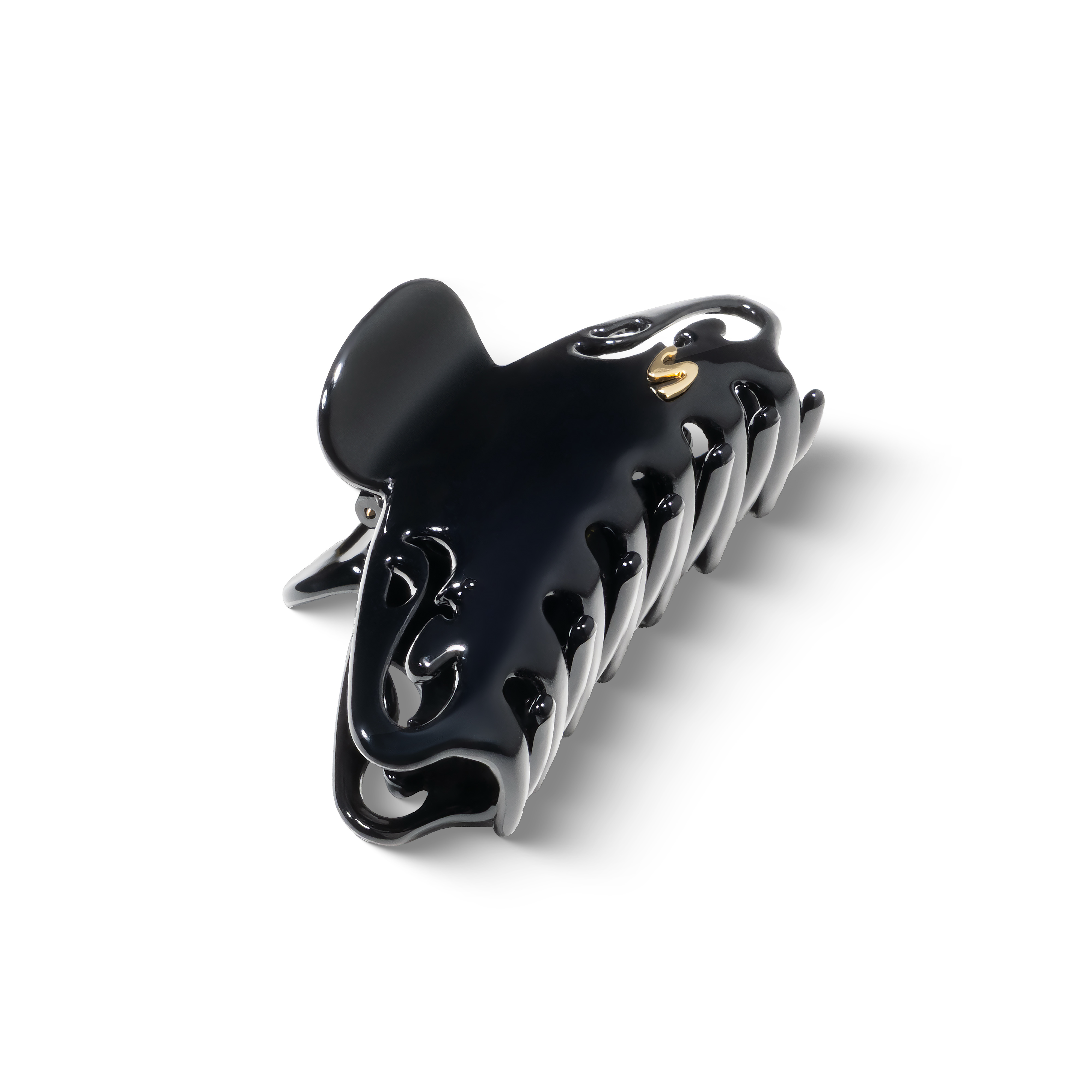 The Melissa Large Claw Clip in glossy black acetate is the essence of refined minimalism. Hand-polished to a mirror finish, it blends Parisian chic with modern versatility. Perfect for securing medium to thick hair with effortless grace.