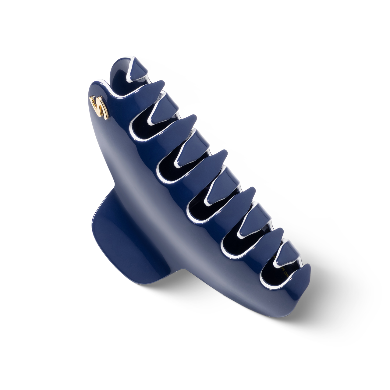 The architecture of midnight elegance. The SACRAE Pince Iconique L from the Reputation Night Capsule Edition transforms the updo into a sculptural moment. Its lacquered Blue Navy silhouette, softened by creamy ivory, echoes the lights and shadows of Paris after dark.