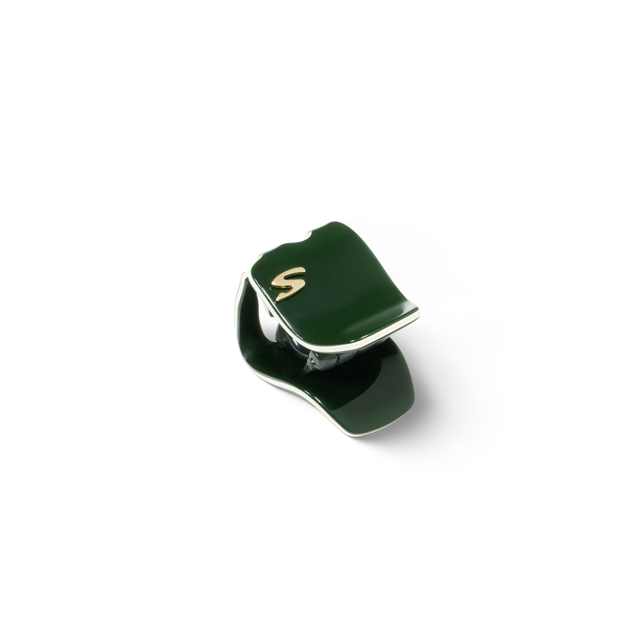 Handcrafted in France from Mazzucchelli Émeraude Intense acetate, illuminated with Swarovski® crystals, and signed with the 14K gold-plated “S” Logo, this petite claw integrates the Grip Link System™ for precise hold with seamless lightness.