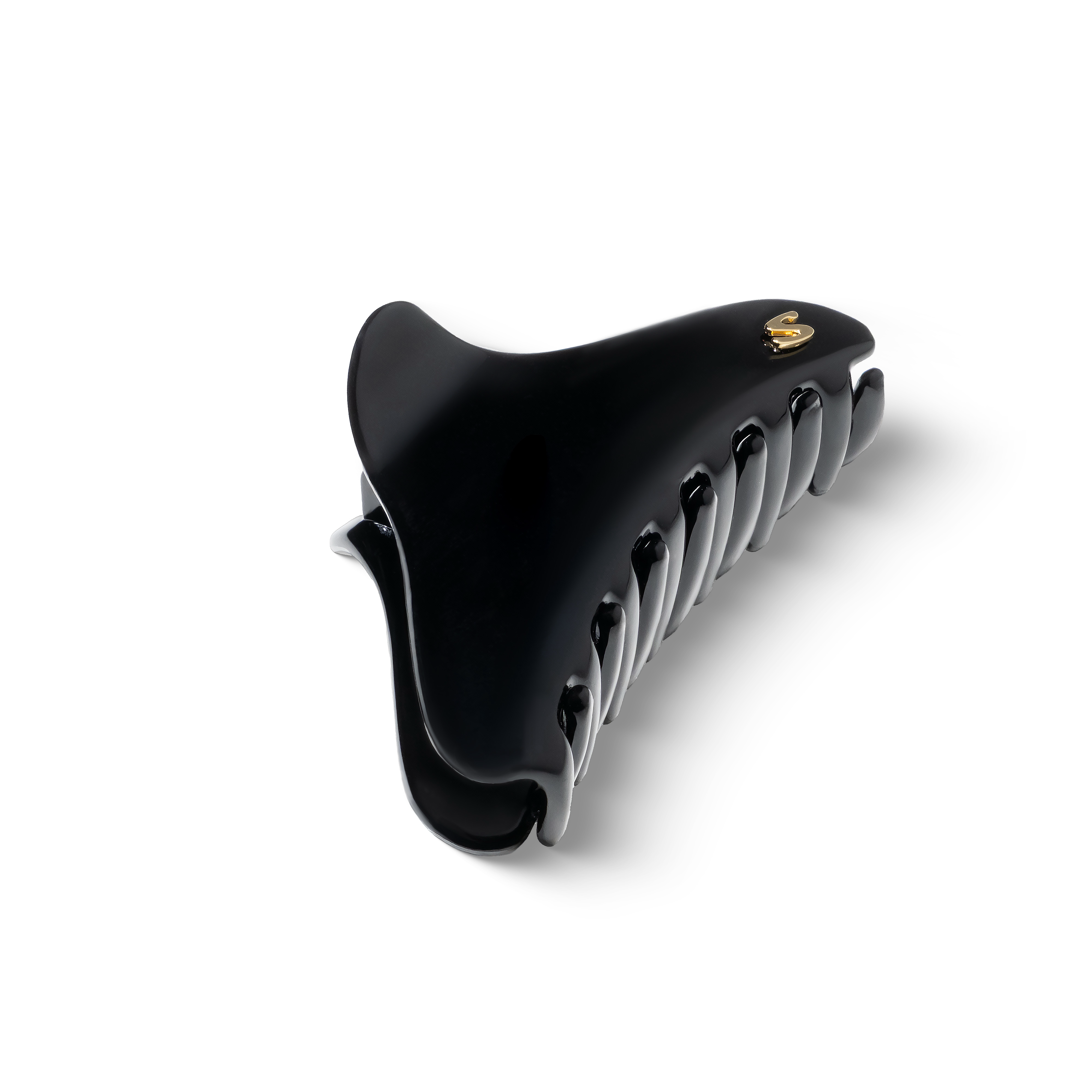 The Yoga Hair Clip in glossy black acetate is a celebration of modern minimalism. Its sleek silhouette and polished finish bring quiet sophistication to effortless styling.