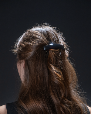 The Jonc Majesté Barrette in glossy black acetate redefines Parisian sophistication. Its sculpted 8 cm silhouette delivers bold elegance with a modern minimalistic edge.