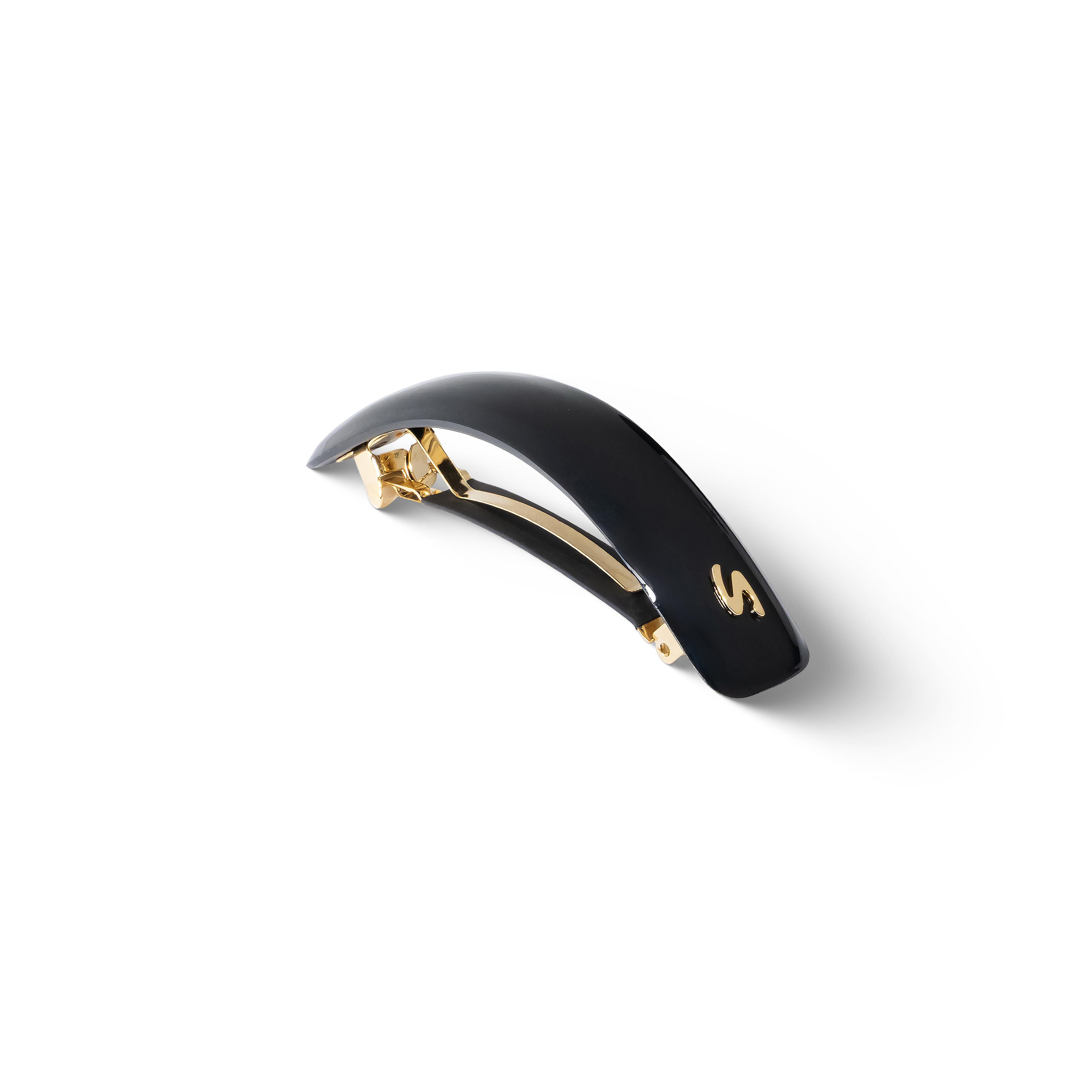 Crafted from hand-polished acetate and finished with the 14K gold-plated Sacrae “S” logo, this barrette pairs luxury detailing with an effortless fit, making it the perfect choice for high ponytails and refined twists.