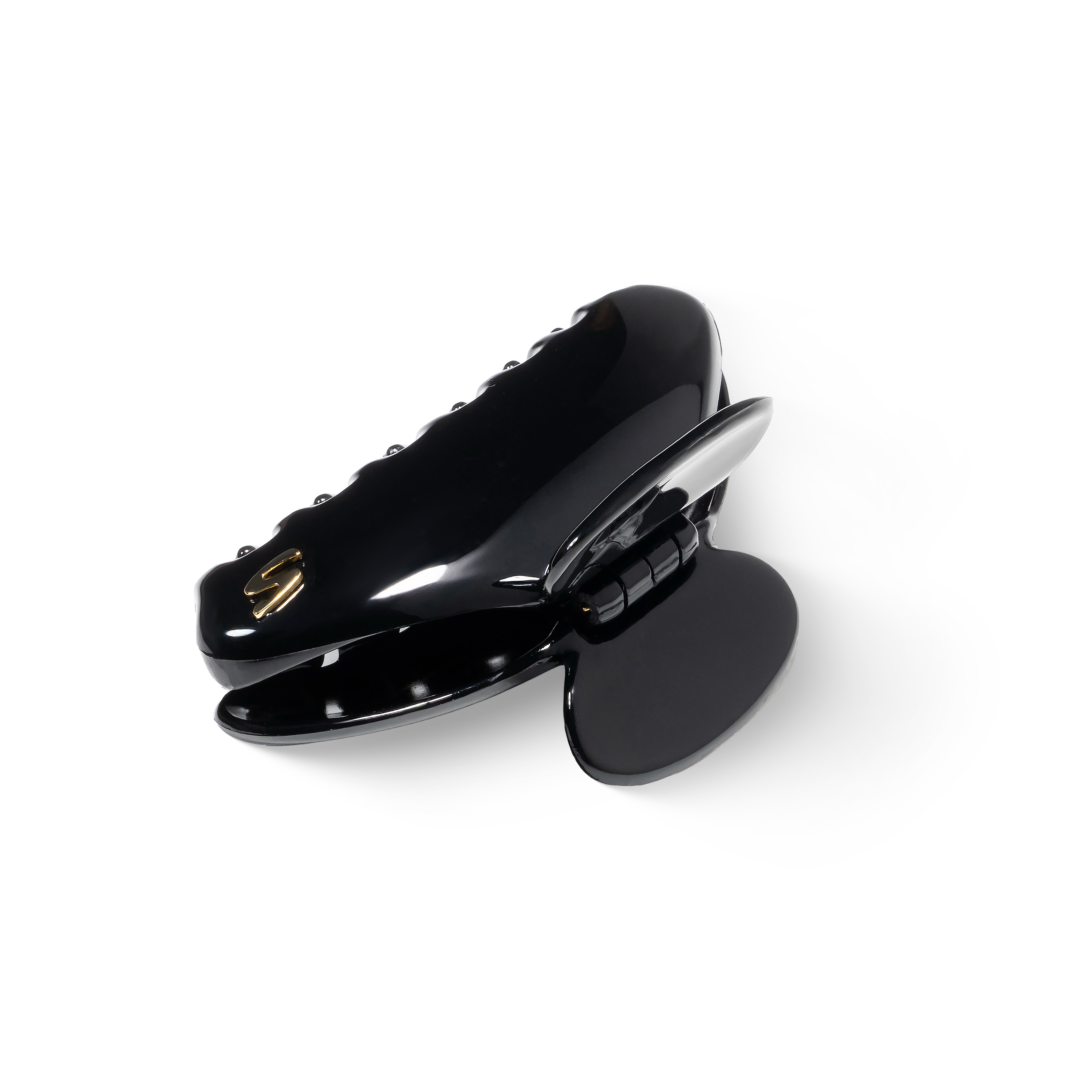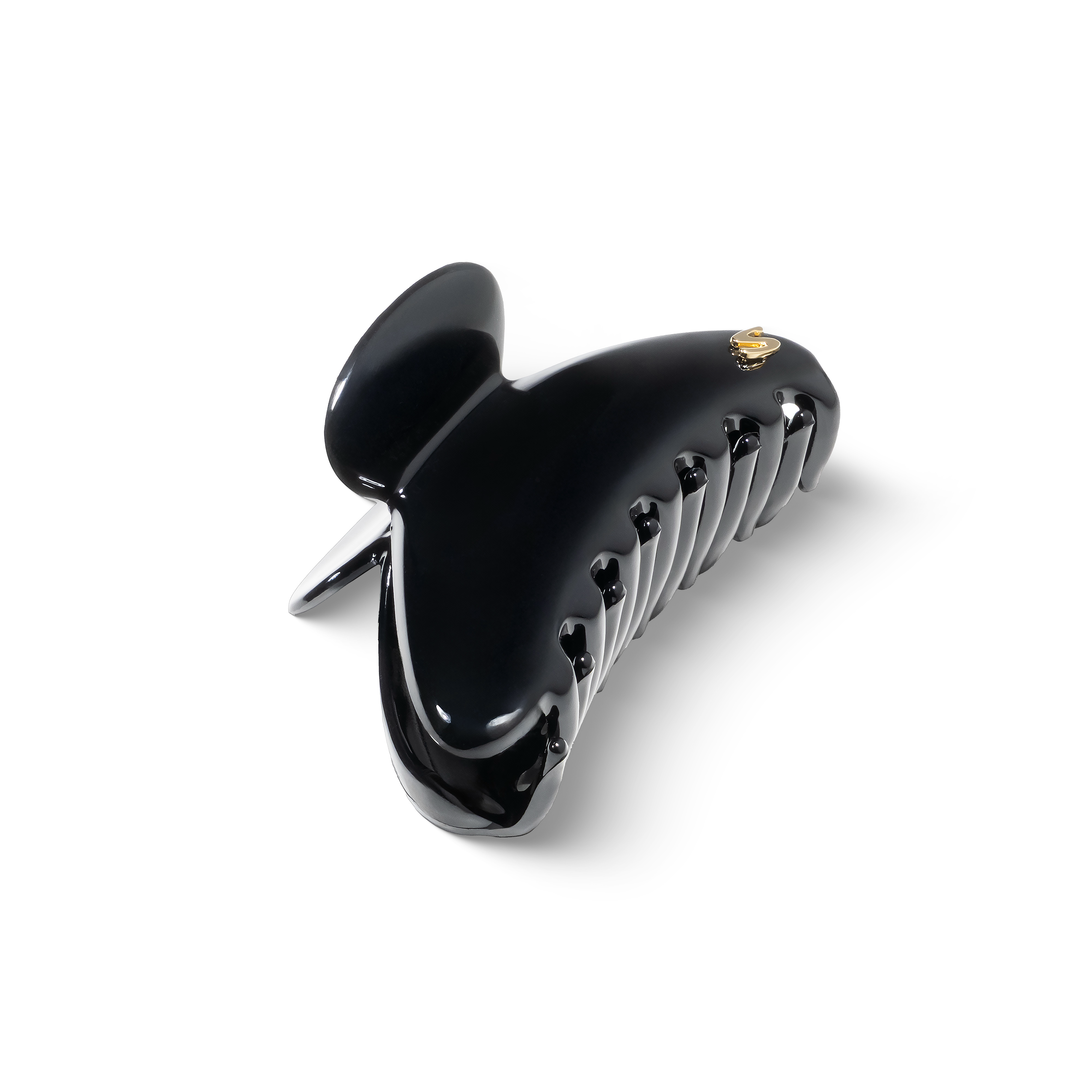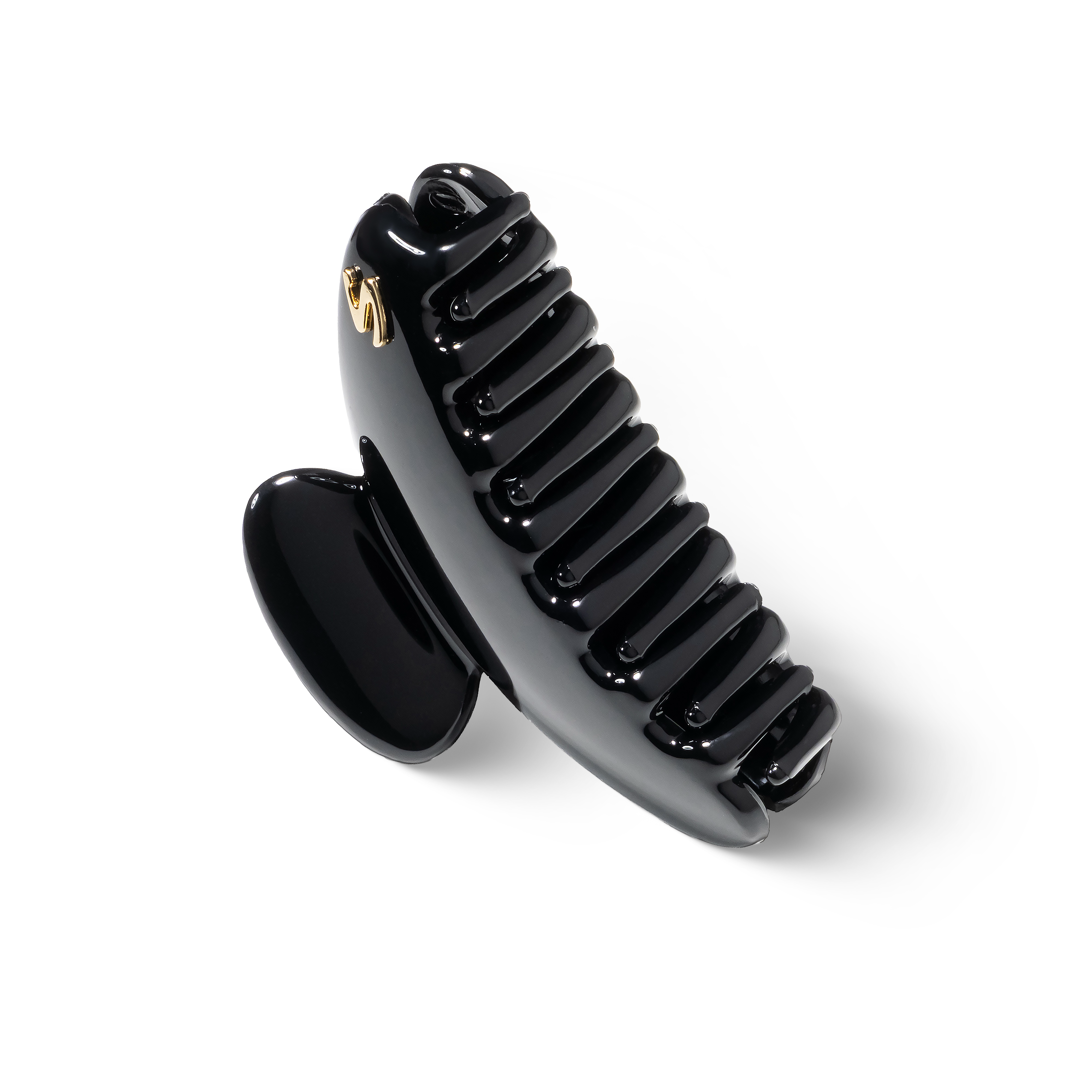 The Lumière Medium Hair Clip in glossy black acetate embodies modern Parisian sophistication. Its polished silhouette and light-reflecting finish make it a perfect piece for elevated everyday styling.