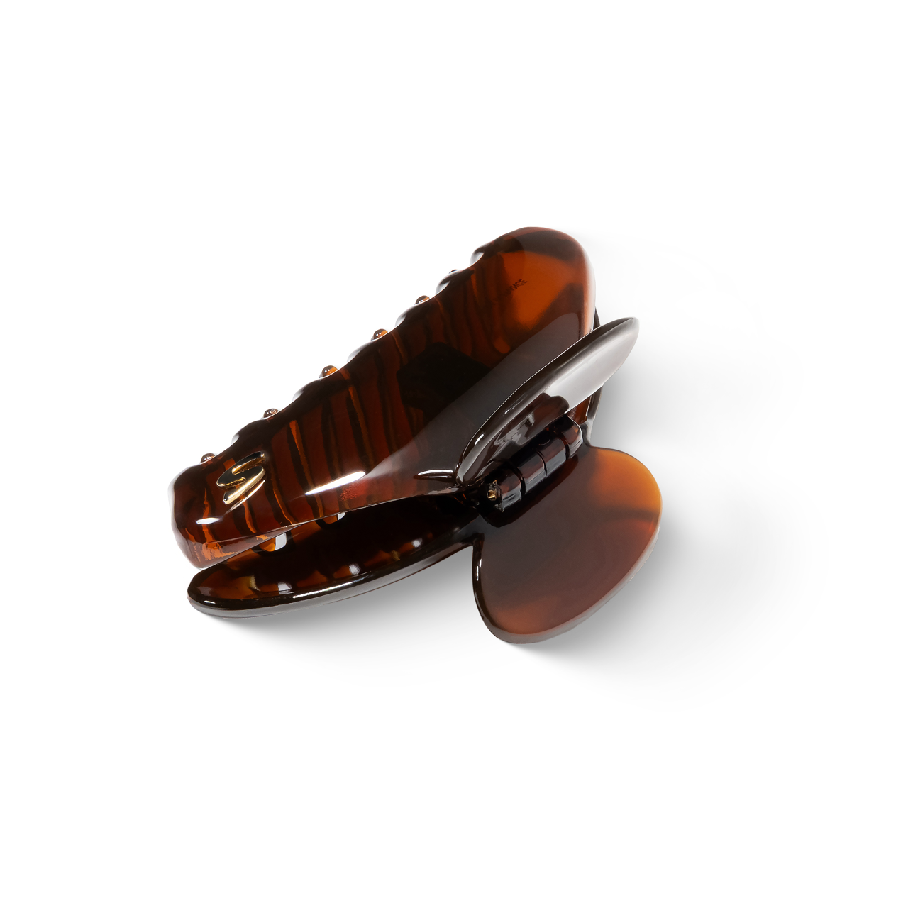 The Lumière Medium Hair Clip in warm tortoise acetate captures the essence of Parisian quiet luxury. Designed to reflect soft light and timeless beauty, it offers an effortless hold with a refined silhouette.