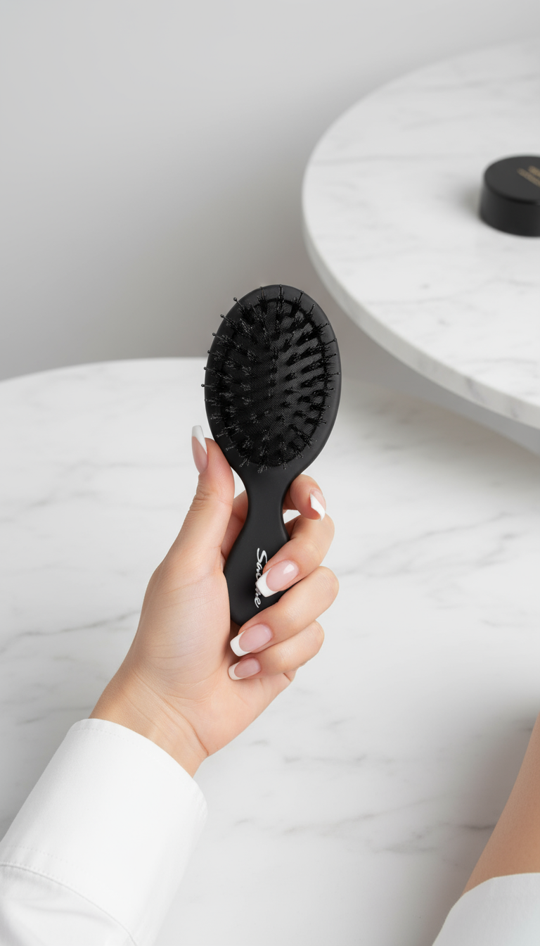 Sacrae Mini Boar-Hair Brush — Sculpt. Smooth. Shine.
